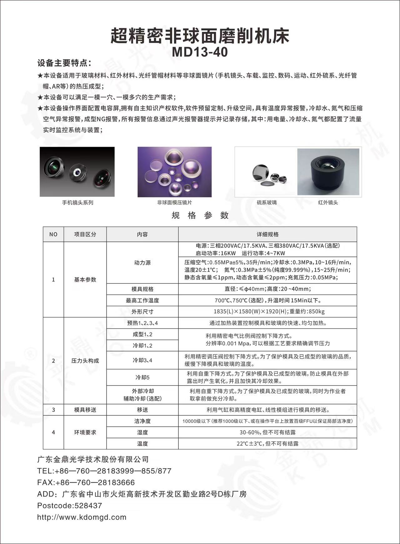 • 本设备适用于玻璃材料、红外材料、光纤管帽等非球面镜片(手机镜头、车载、监控、数码、运动、红外硫系、光纤管帽、AR等)的热压成型;